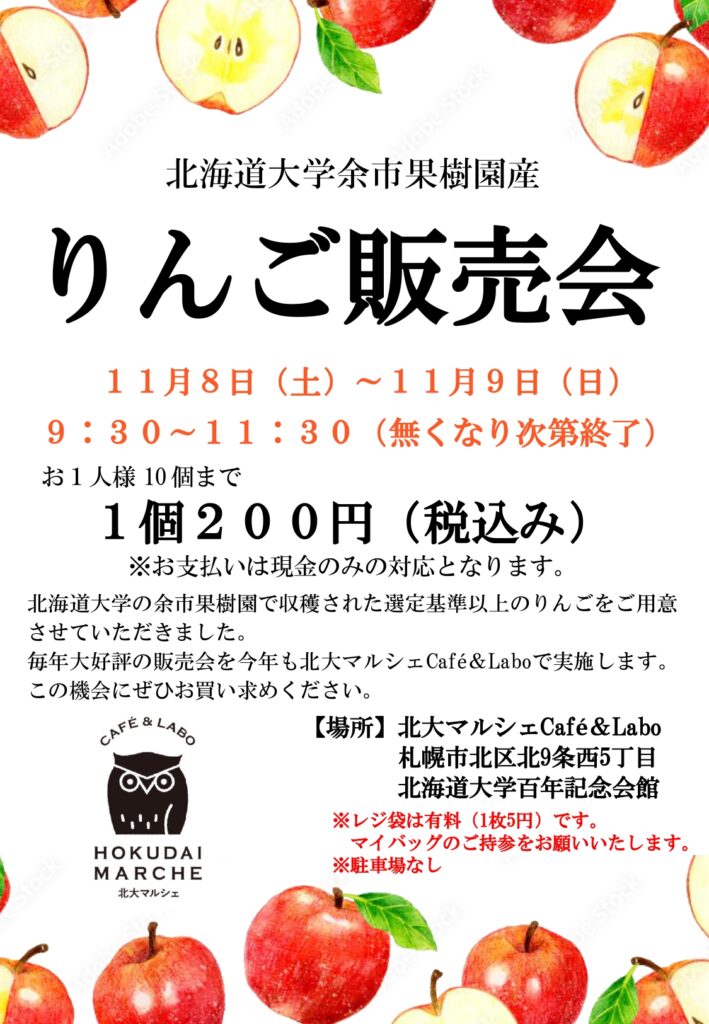 11月8日・9日に北海道大学余市果樹園産りんご販売会を実施します